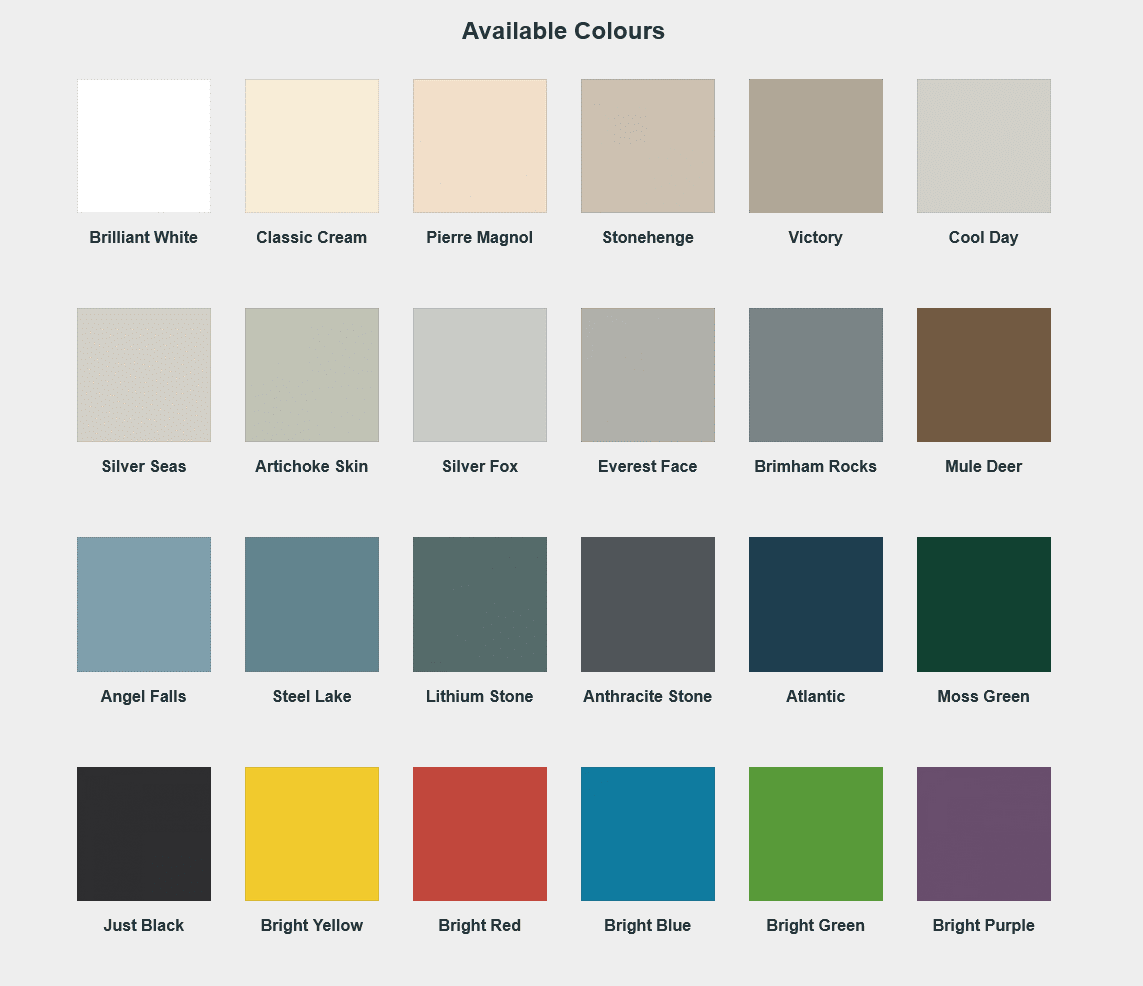 - Colours: A wide range of colours. For Brilliant White please see related products.